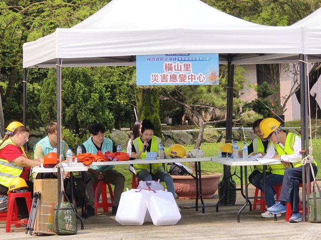 今天我們在 文化彌勒佛院 辦理 115年度複合式防災演練,集結警消、清潔隊、衛生所、台電、中華電信、自來水公司、救難協會、搶災開口合約廠商、橫山里自主防災社區及各防災企業夥伴共同參與
